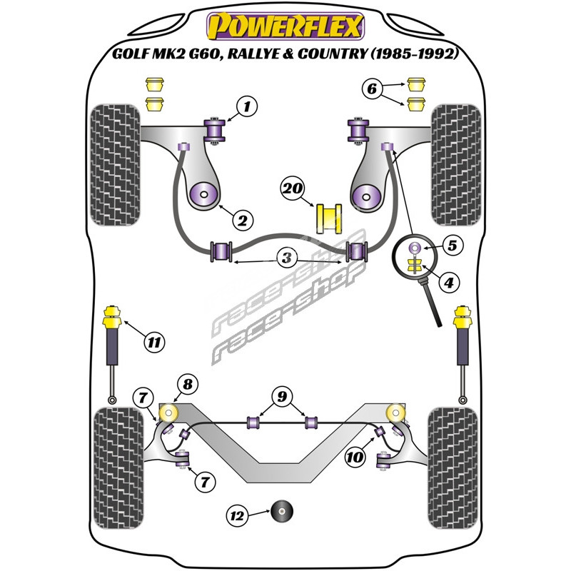 Powerflex Rear Anti Roll Bar Outer Mount 20mm Volkswagen Golf MK2 4WD