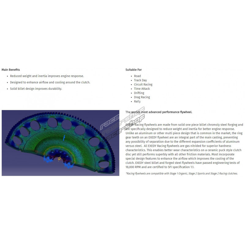 Flywheel Exedy combines low weight, low inertia and high terminal capacity. It is designed for lightly tuned racing cars or street cars. Provides better response in high speed without sacrificing low speed torque.Pošlite obsluhe obchodu otázku k tomuto produktu.