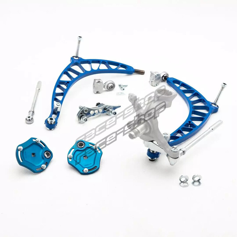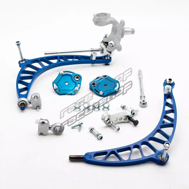 With increased steering lock, corrected roll centre, camber adjustment and an Ackermann reduction, this kit will offer over 60° of drift optimised steering lock. This kit is "FD Legal", meaning the top mount stays within OEM specification - making the kits eligible for competition worldwide.