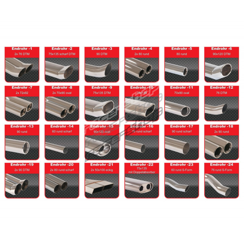 Please write the code of the exhaust tip to the note before ordering. (for example: Endrohr-1)
