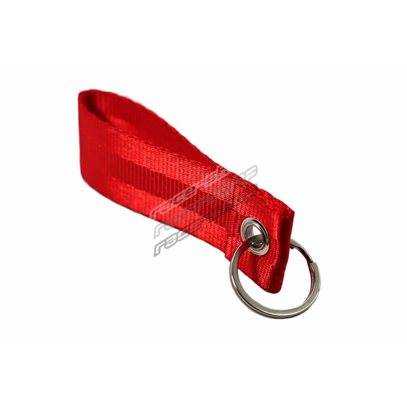 Seatbelt strap keychain, made entirely from seatbelt-like textile fabric.