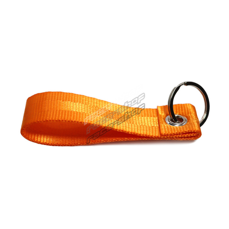 Seatbelt strap keychain, made entirely from seatbelt-like textile fabric.