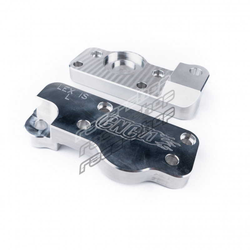 The adapters are milled on CNC machines, which ensures a high quality finish and 100% matching of the adapter to the steering knuckle and the swing arm pin. The aluminum alloy used guarantees durability that is greater than that of the standard solution.