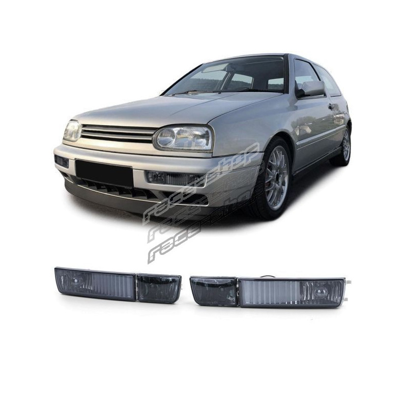 Clear glass fog lights H3 with turn signal Black Smoke for VW Golf 3 91-97