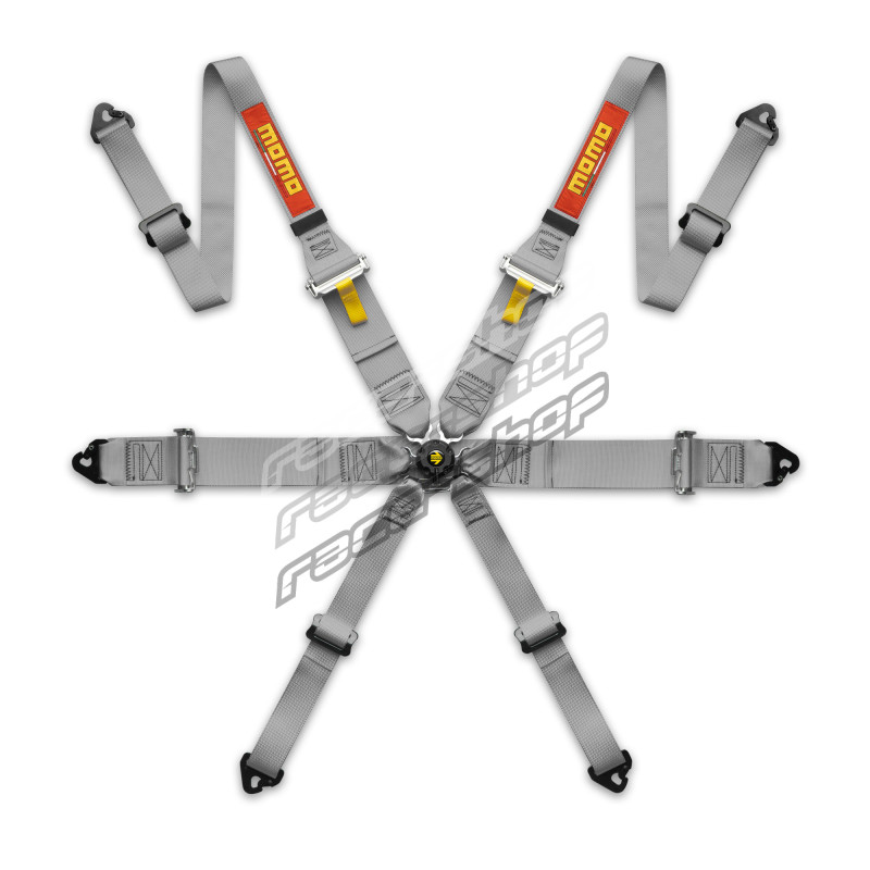 FIA FHR 6 point safety belts MOMO PRO DRIVER 3" (76 mm), grey