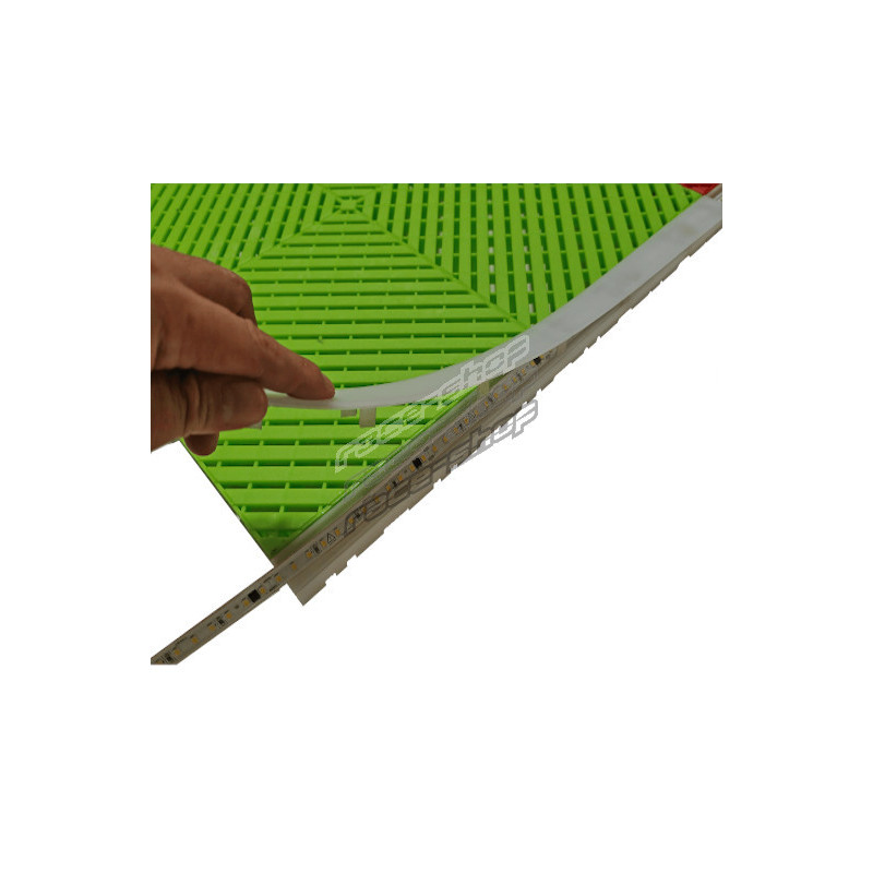 RACES TileGlow floor track is a purpose-built LED strip housing designed to seamlessly integrate between RACES modular floor tiles. Made from durable translucent plastic, it sits flush within the tile joints, providing a clean and professional lighting solution without disrupting the surface profile. The channel allows for quick installation of standard LED strip lights, offering ambient or directional lighting that's ideal for sports flooring, exhibition areas, retail spaces, and creative architectural applications.