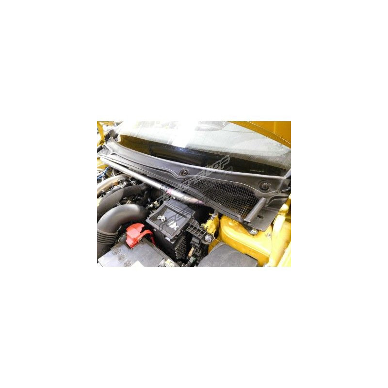 Designed to improve chassis rigidity by tying the two strut towers together with the main chassis, it transmits the load of each strut tower during cornering, tying the two towers together and reducing chassis deformation. The results are a better handling, a more precise steering system and a better suspension characteristic angles control.