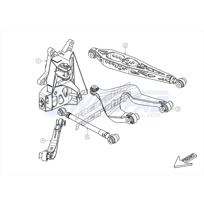 CrMo rod ends and sphericals used instead of rubber bushings