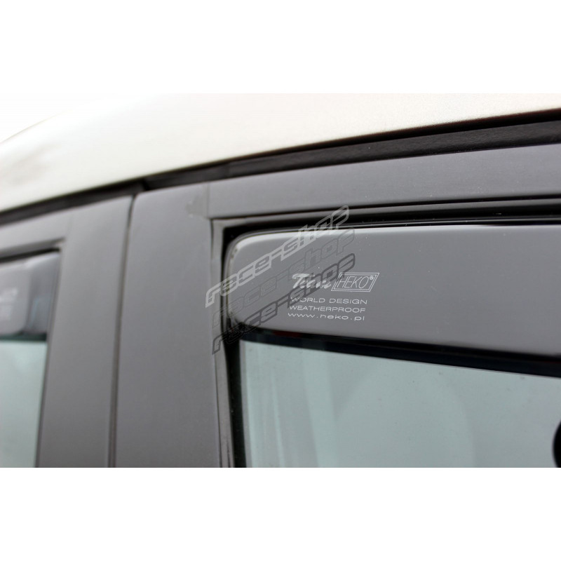 Window deflectors allow the windows to be opened in all weathers, ensuring natural air circulation inside the vehicle and preventing fogging of the windows in rain, fog or snow. This stylish accessory also regulates the airflow and protects the driver from the unpleasant effects of air flowing into the vehicle when the window is open. Wind deflectors (window deflectors) are particularly appreciated in difficult weather conditions (high temperatures, rain, snow) and are also very popular among professional drivers.